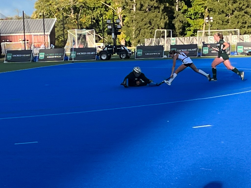For the game, Sacred Heart drew six penalty corners and registered four shots on goal. Raising its pressure in the second half, Greenwich Academy had its scoring opportunities, finishing the game with eight penalty corners and six shots on goal.
