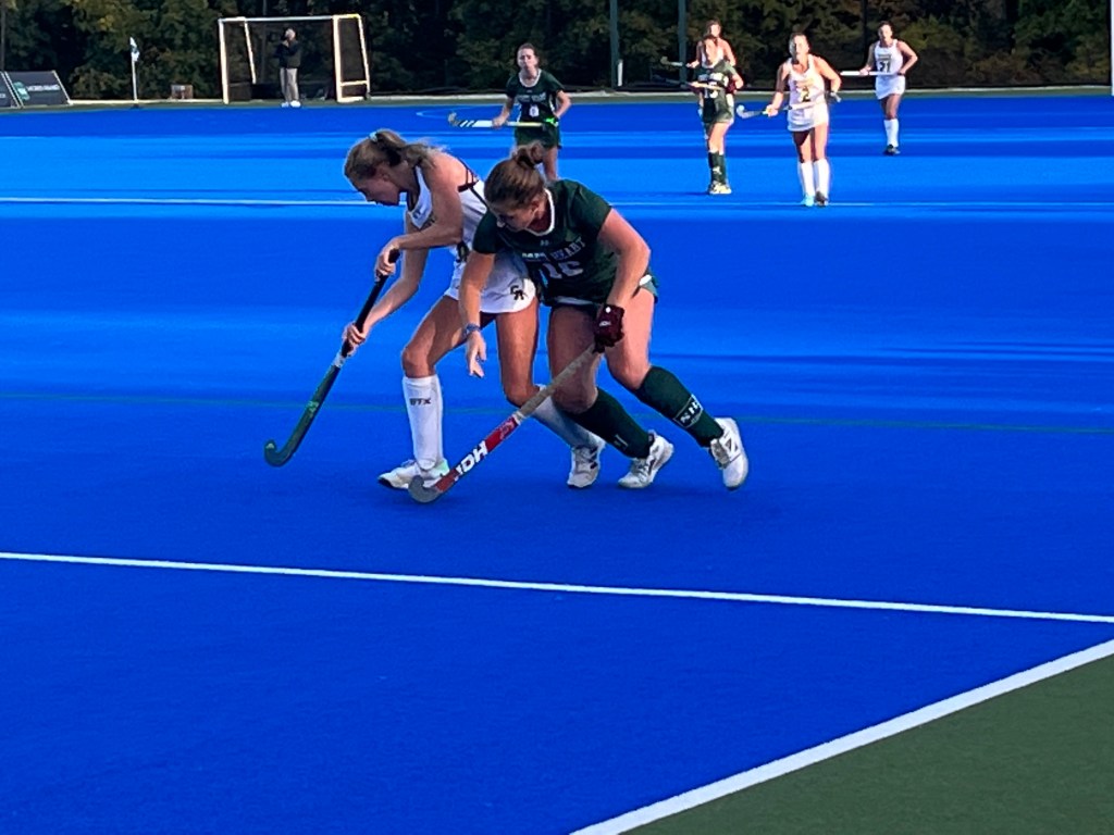 Both teams battled for possession and competed fiercely as the matchup remained scoreless until 4:47 remained in the opening quarter. That’s when Ainsley Clough scored, capitalizing on a penalty corner to give the home team a 1-0 lead.