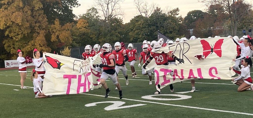 “I’ll put it right up there with the New Canaan and Darien win a couple of years ago and the Ridgefield win when we beat them, it’s right up there,” DiNunzio said. “Why I say it’s right up there is because we were missing one of our better linemen, a couple of guys were banged up. Coming off a bye week, so I wasn’t sure what we were going to get tonight. But I knew we would play hard, I knew we were going to play tough, we’ve been working these kids really tough the last two weeks. We said if you want to go out and beat Greenwich you have to want it more.”