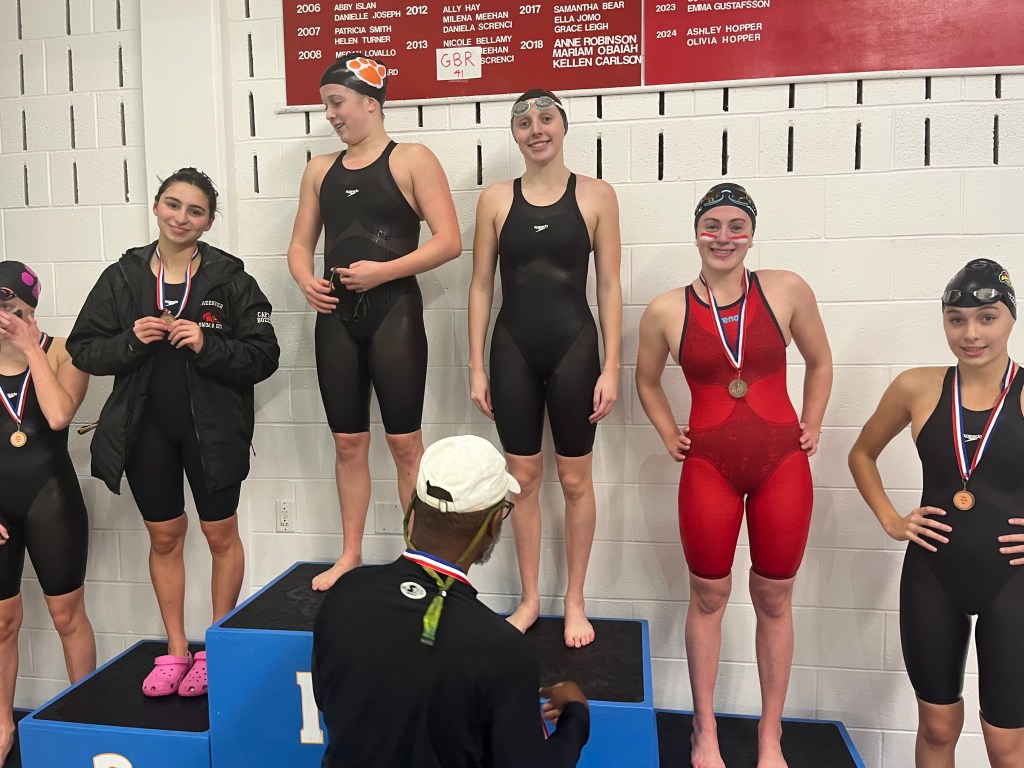 In the 200 freestyle relay, Ridgefield claimed the gold medal (1:37.45), while Greenwich (Bozkurt, Stehmann, Lily Norton and Charette) were second (1:39.11).