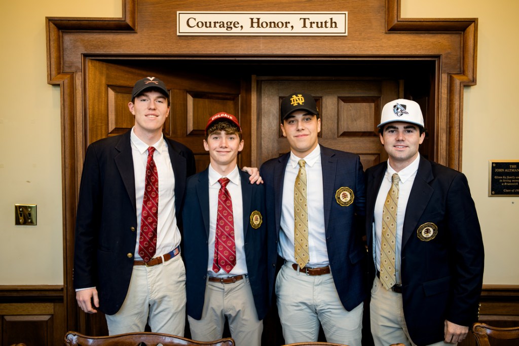 Four Brunswick School seniors, who excel in their respective sports, signed National Letters of Intent at a special signing ceremony held at Brunswick School on Nov. 13.