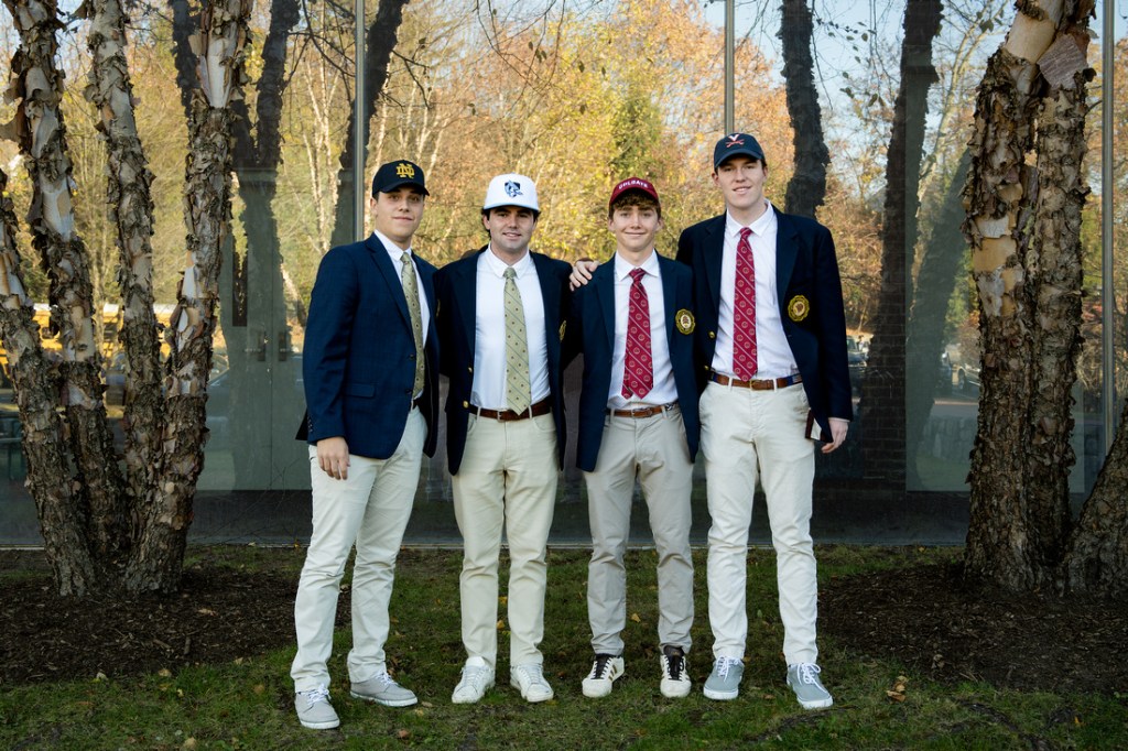 Photo provided by Brunswick School: From left to right, Henry Raine, Patrick O’Donohue, Aidan Diaz-Matos and Patrick Hiebert of Brunswick School each signed National Letters of Intent to play collegiate athletics at the Division I level.