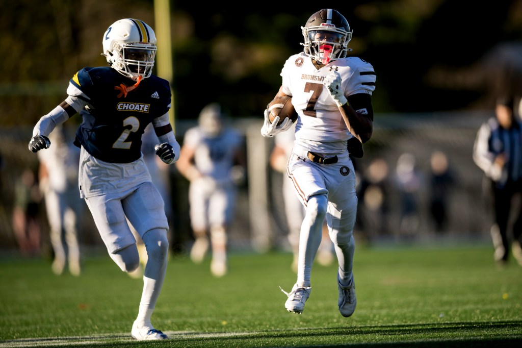 This physical matchup between the postseason rivals was scoreless after the first quarter and tied at 6-6 heading into halftime. Choate Rosemary Hall has won 18 consecutive games since its 2022 loss to Brunswick, including two 9-0 seasons. The Wild Boars led, 13-6, following three quarters of action, before pulling away midway through the fourth quarter.