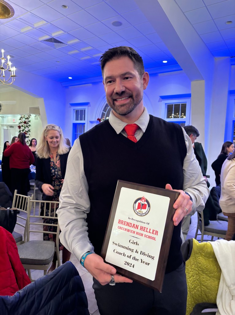Heller was named the CHSCA Girls Swimming & Diving Coach of the Year for 2024. He was presented with the award Connecticut High School Coaches Association All-State Dinner on Dec. 3 at the Aqua Turf Club in Plantsville, Connecticut.