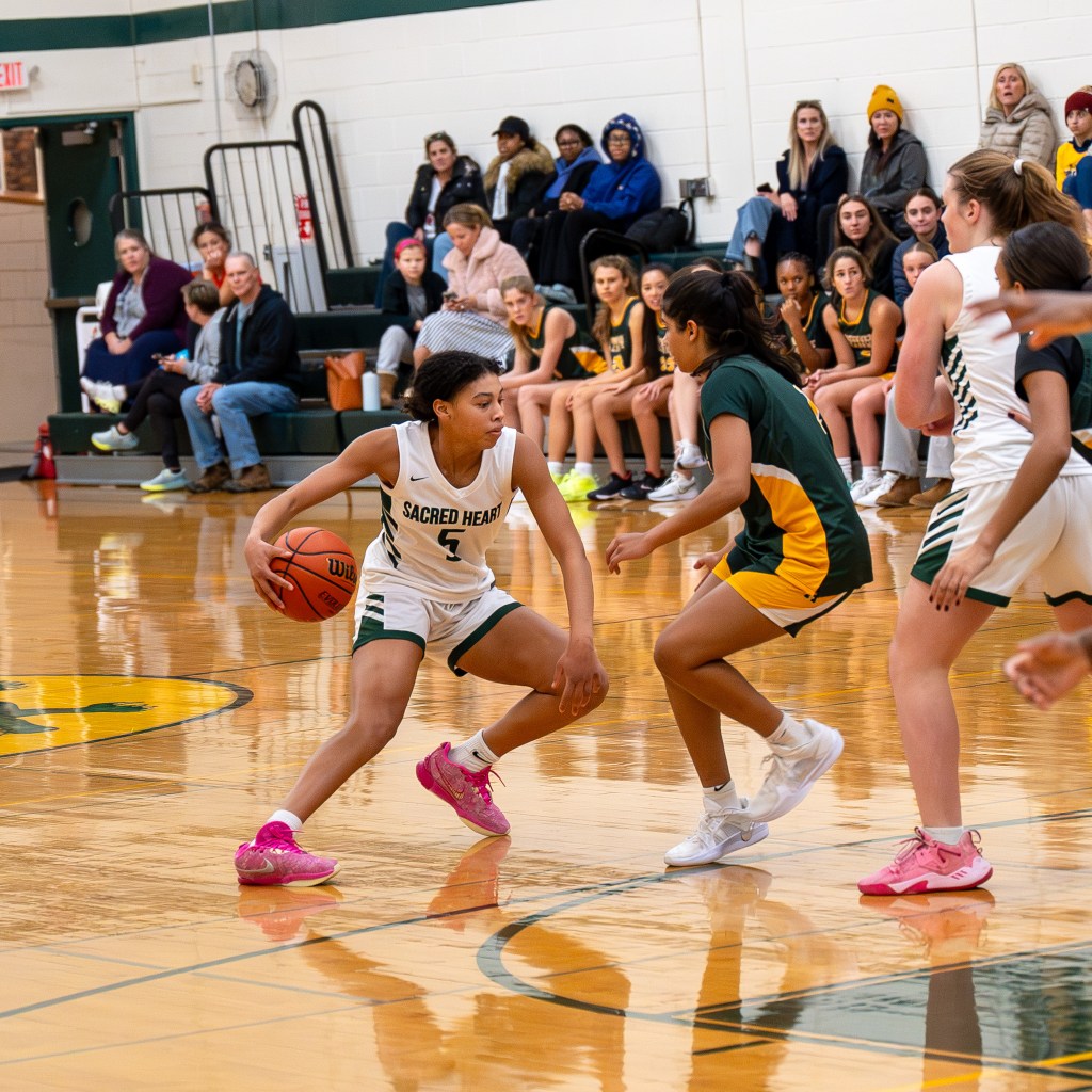 Senior guard Aisha Hassan led a balanced Sacred Heart Greenwich scoring effort, totaling 12 points, while senior forward/center/captain Jadamarie Henry added points and eight rebounds in the winning effort.