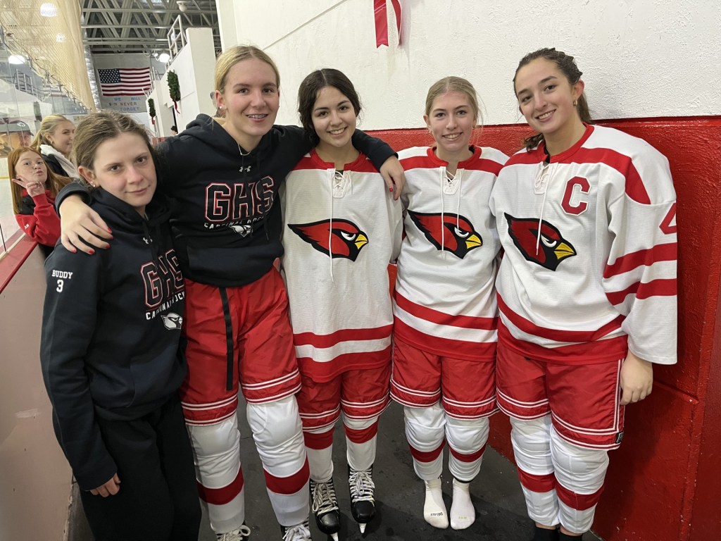 Captaining the Cardinals are seniors Aubrey Roth and Lexie Carino. Both have been a part of the Cardinals’ ice hockey program for several seasons, bringing experience and skill at their respective positions. Roth is a forward on Greenwich’s first line and Carino is one of the Cards’ key defenders. She is currently sidelined with concussion symptoms and hopes to return to the ice in several weeks.