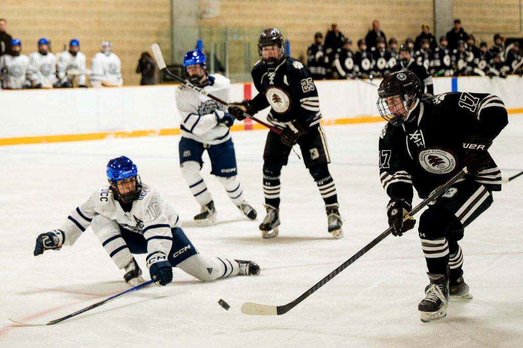 Ethan Neller of Upper Canada College scored the game’s first goal 1:02 into the first period, but the Bruins tied the score at 1-1 when senior forward Keegan Kazan, who skates on the Bruins’ first line, scored off assists from linemates Oliver Czaja, a senior and Ben Lombardi, a junior, 12:59 into the opening period.