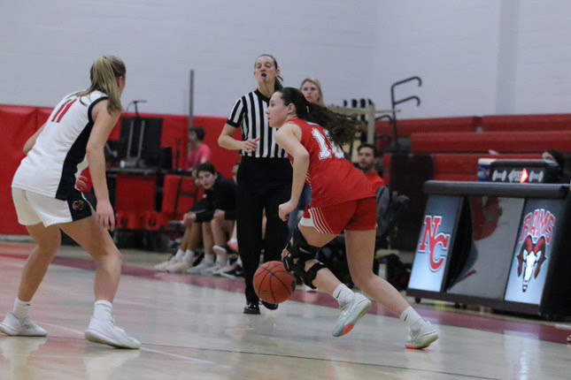 Photo by Dan Utzinger: Elsa Xhekaj drives to the basket for a layup for the Cardinals.