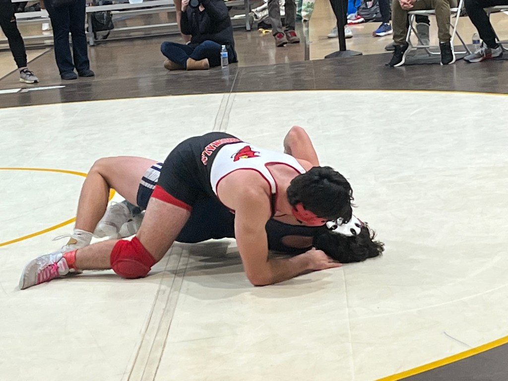 The 177-pound division saw Brunswick junior Will O’Reilly register a stellar second-place finish. O’Reilly lost to Benjamin Smith of New York Military Academy in the title bout by pinfall in 2:00. Sophomore Alex Neitzell was fourth for Greenwich High in the 177-pound class, while Cardinals teammate Oliver Schwartz, a freshman, finished fifth.