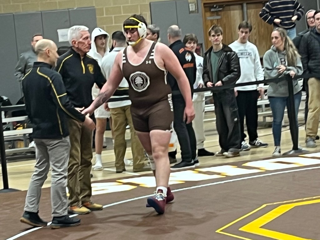 Junior Michael Marini won the heavyweight division, the 287-pound division for the Bruins. The No. 1-seeded Marini pinned Booker Erskine of Episcopal Academy in the championship matchup in 1:05. Marini led the match, 3-0, when he pinned his opponent.