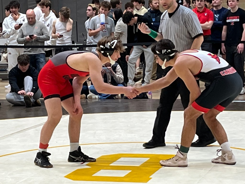 Declan Murray, a Bruins senior, finished in second place in the 217-pound bracket. He lost to Canterbury’s Soren Rief by pinfall in the title match. In the 217 semifinals, Murray pinned his opponent’s shoulders to the mat in 2:16.