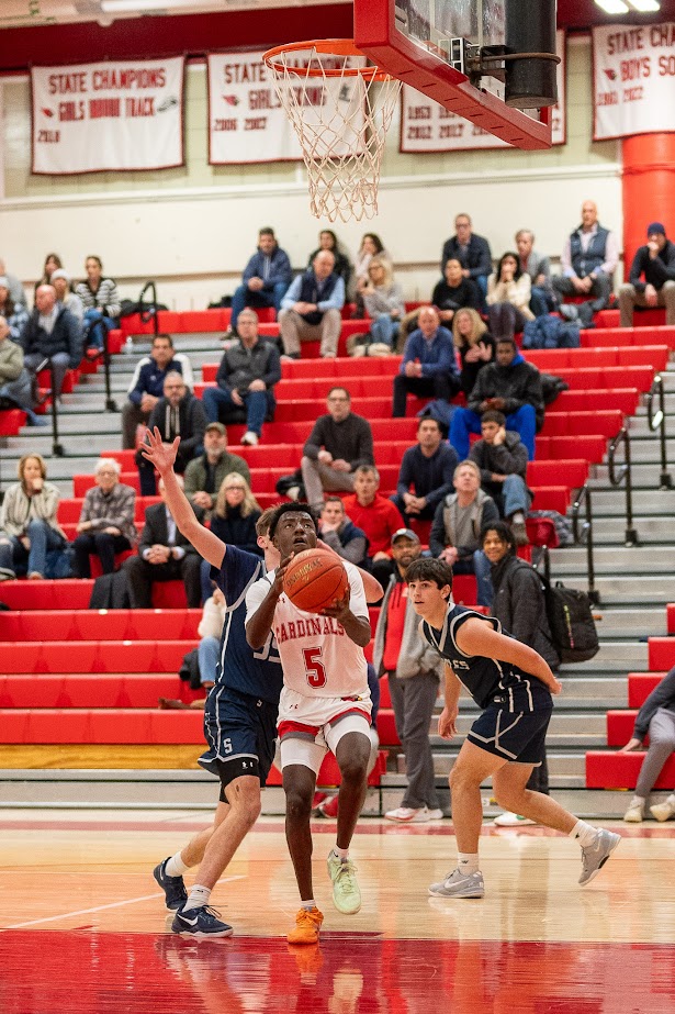 A layup by Tobias cut Greenwich’s lead to 45-42 with 6:41 remaining in the fourth quarter, prompting a Cardinals timeout. Following the timeout, Scott swished a 3-pointer from the right side, giving GHS a 48-42 advantage with 6:20 left in the fourth quarter.