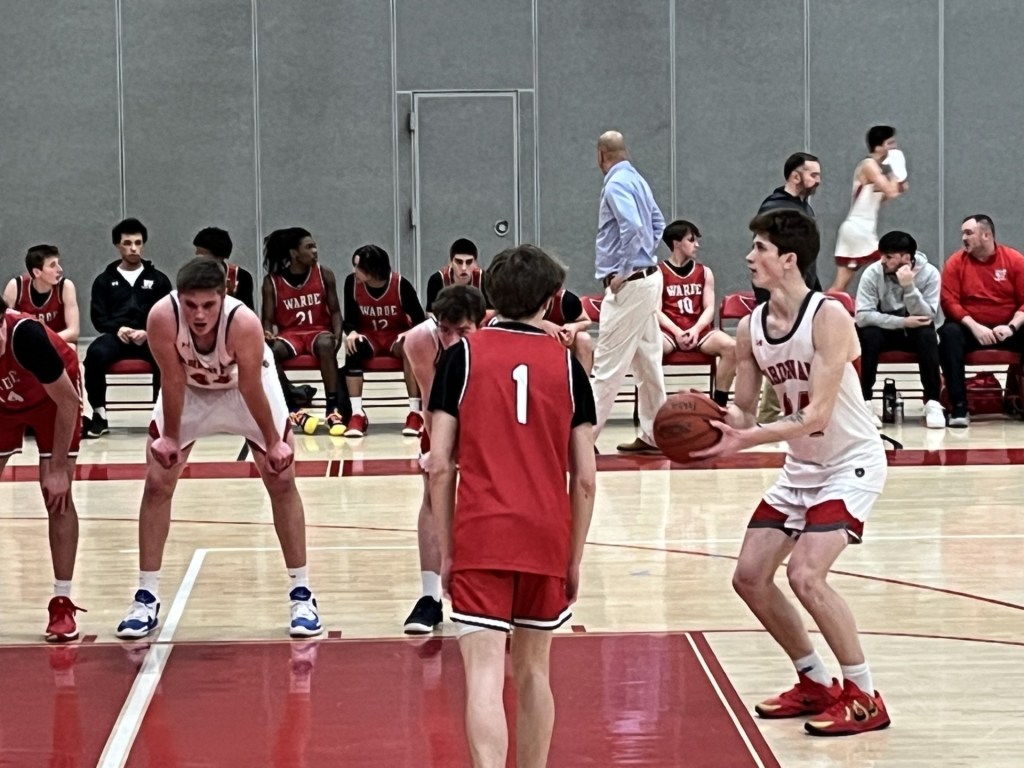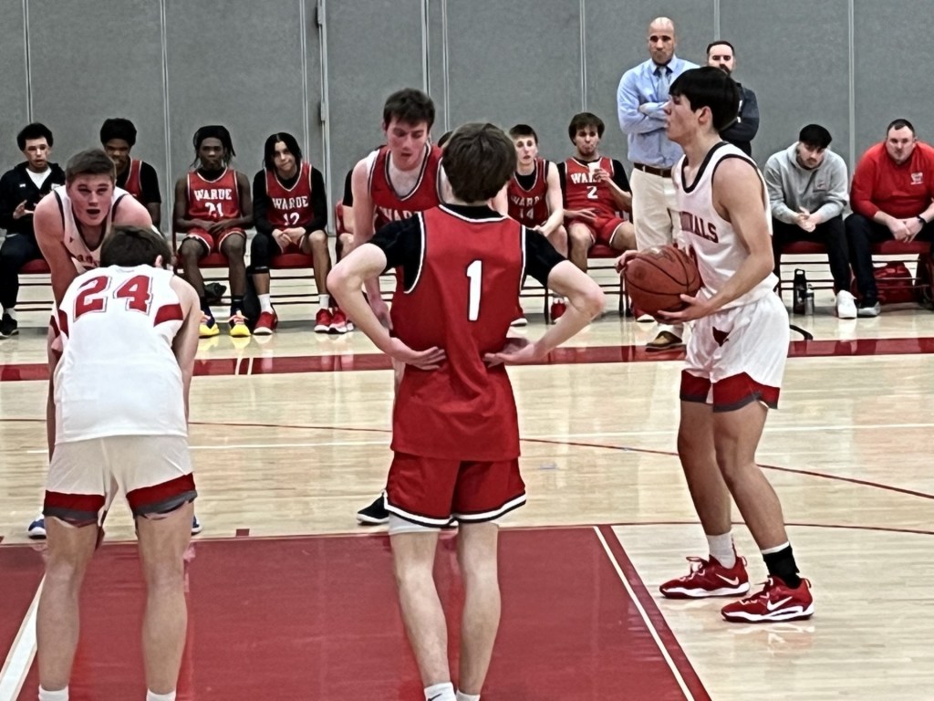 Warde was led by senior center Jack Cramer, who posted 24 points – 12 in each half of action. Greenwich held a 59-58 and Warde had possession with 3.6 seconds remaining in the fourth quarter under its own basket. The Mustangs took a final shot, but missed and the Cardinals pulled out the win.