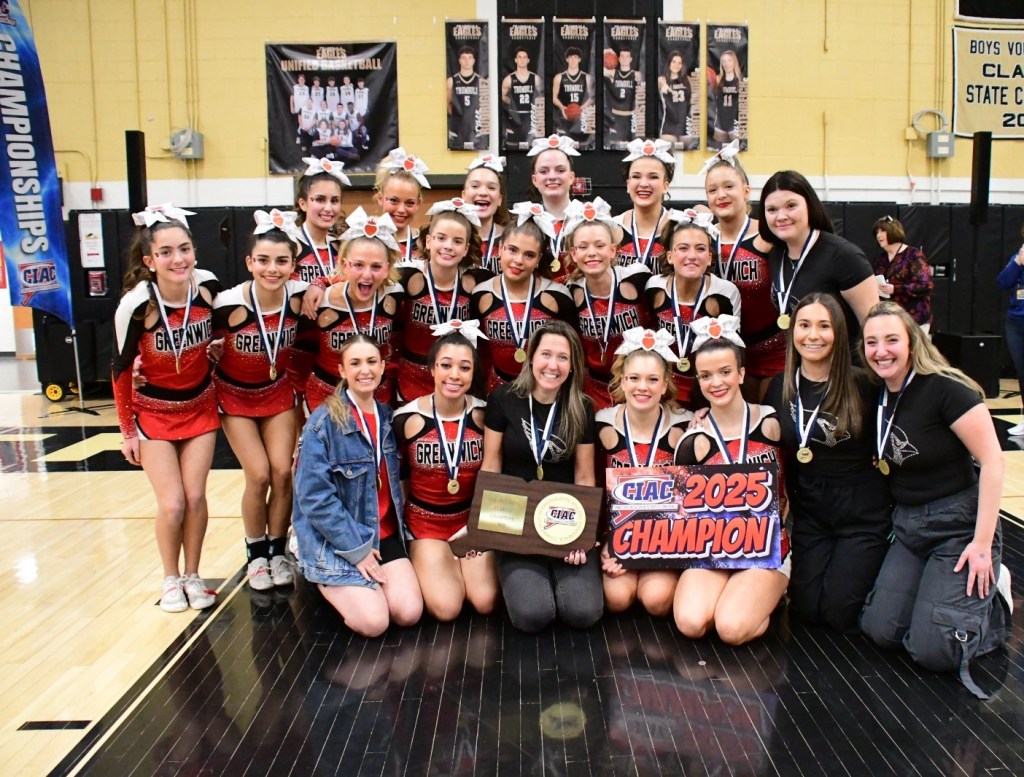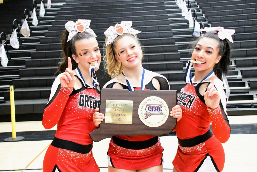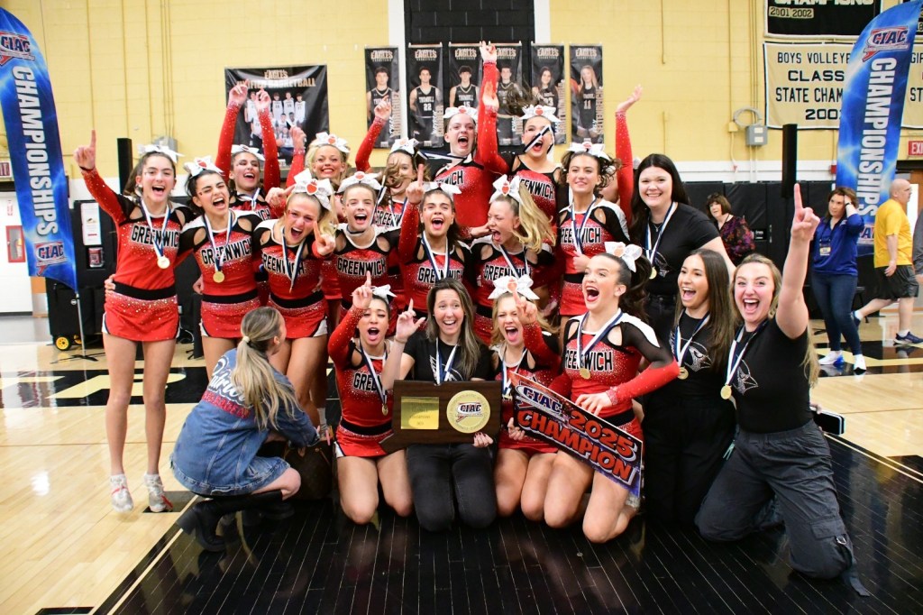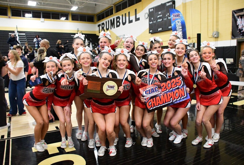 Greenwich captured the 2025 CIAC Class LL State Cheerleading Championship competition at Trumbull High School on March 1st. The Cardinals finished first out of 21 teams at the Class LL State competition, earning a winning score of 98.50 points. The win marked the first time in 18 years that Greenwich last took home a state championship. Danbury placed second at the CIAC Class LL championship (96.60 points) and Fairfield Ludlowe was third (91.25 points).