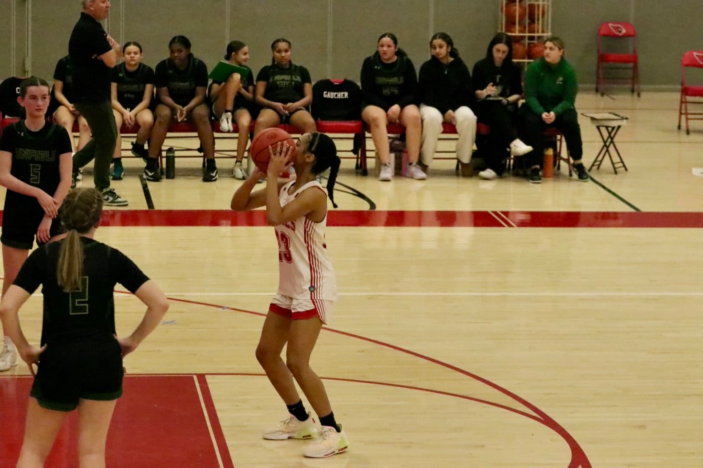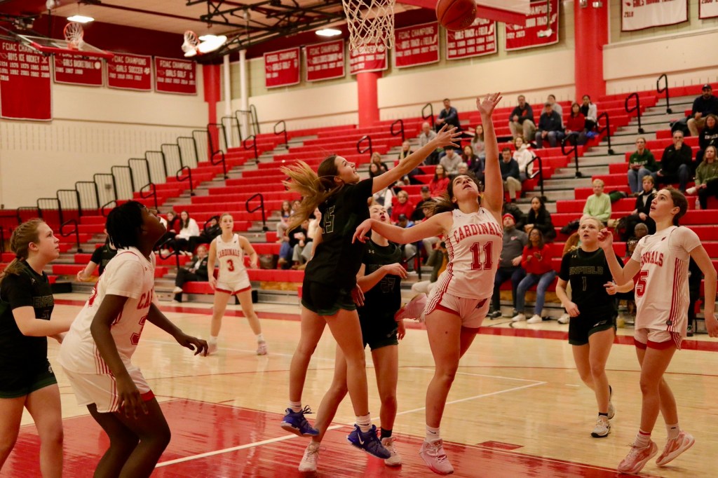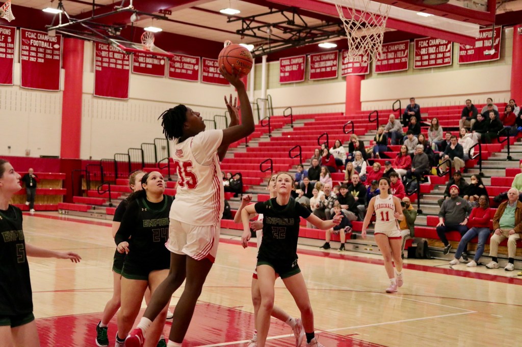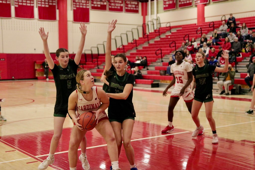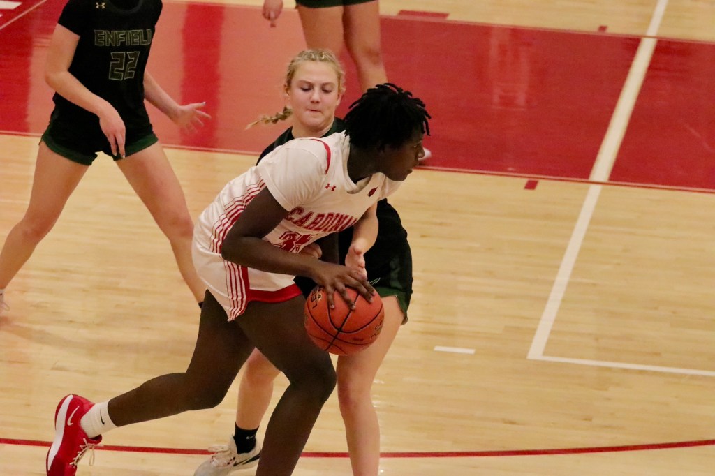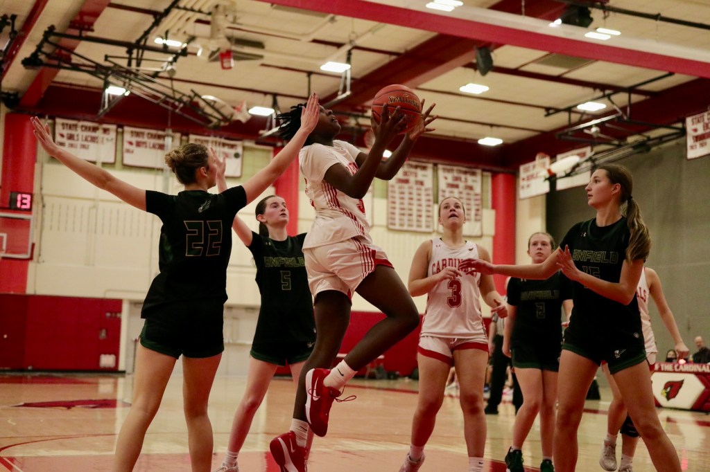Victorious Greenwich outscored Enfield 20-8 in the fourth quarter after the third quarter ended in a 30-30 tie. The final quarter saw the Cardinals execute their offense well, while clamping down on defense, making it difficult for Enfield to get open looks at the basket.