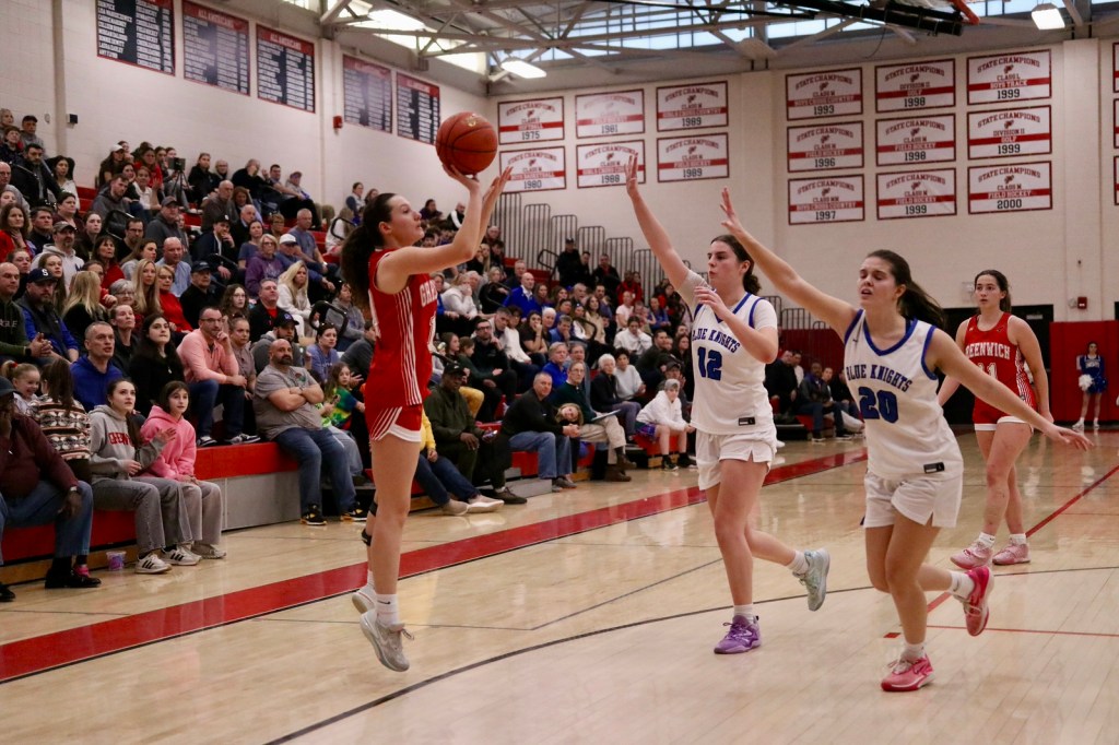 Coached by Howard Hewitt, the Blue Knights have a 22-1 record on the season, their lone loss coming back in December against Conard. Southington seized a 31-23 advantage on Greenwich following three quarters of action, behind stellar shooting, especially from 3-point range.