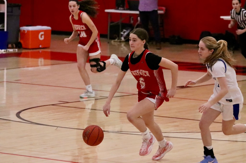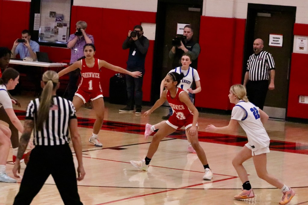 In the CIAC Class LL semifinal-round showdown against Southington, freshman center Zuri Faison scored a team-best 14 points to pace the Cardinals. Senior forward/captain Kate Baxendale had seven points, along with strong defensive play and freshman point guard Elsa Xhekaj had five points including one 3-pointer for Greenwich.