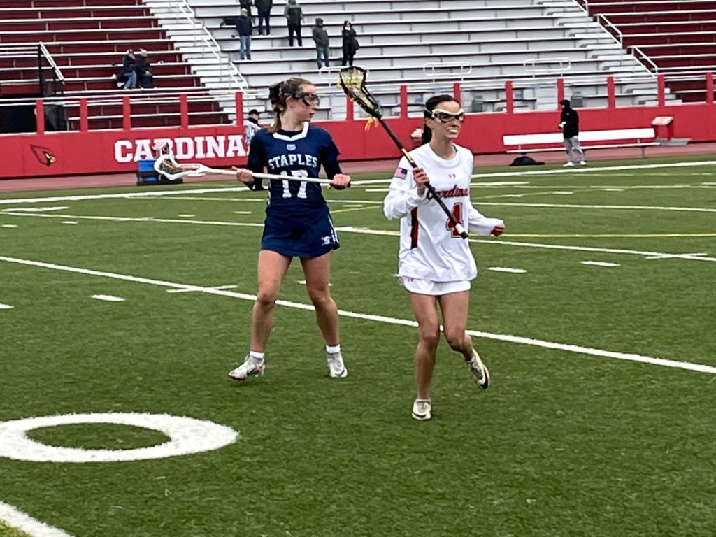 “We need to work on the draw,” said Civitillo, who played in the midfield along with sophomore Lily Nogaki and junior Lindsay Messer against Staples. “We’re trying to work on it in practice and figure out who’s our draw taker, who’s good on the circle, who’s greedy for the ball.”