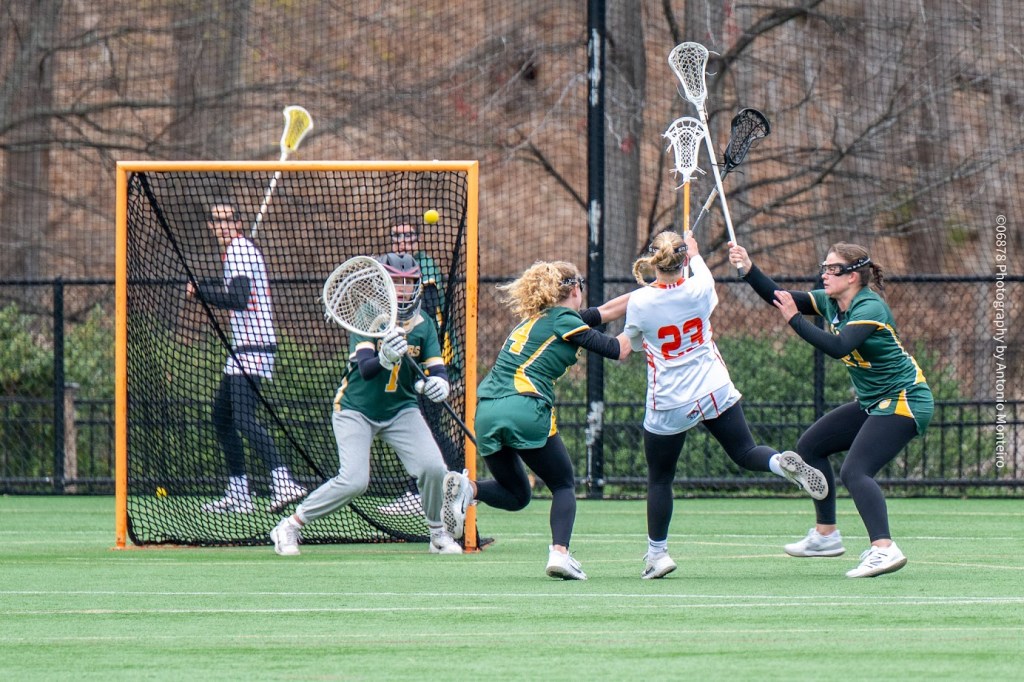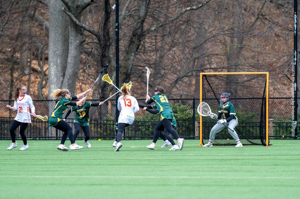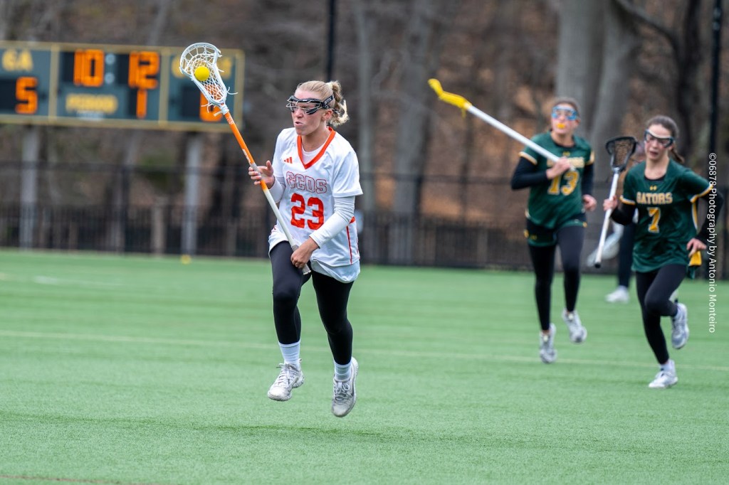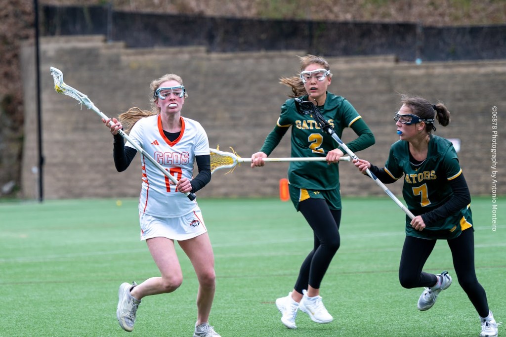 Greenwich Country Day’s goal in the opening half came from the stick of Caroline Cabrera. A junior, Cabrera scored off an 8-meter shot for the Tigers, who trailed 9-1 at halftime. Cabrera, senior attack Ella Wilner, senior defender Ryan Cassin and junior defender Bianca Amen each serve as captains for Greenwich Country Day’s varsity squad.