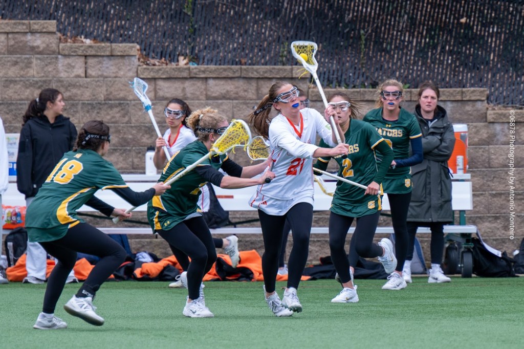 With Katie Barr, Ruby Montanez and Leighton Collier sparking the offense and Lila Volpe and goalie Persia Shipman pacing the defense, Greenwich Academy recorded a 13-4 win over visiting Greenwich Country Day School in an early season FAA matchup. The win improved GA’s record to 2-1, which it improved to 3-1 with a decisive 13-3 triumph against School of the Holy Child on April 12. So, the Gators, who host Westminster School today (April 14) at 4:45 p.m., are 3-0 in FAA play.