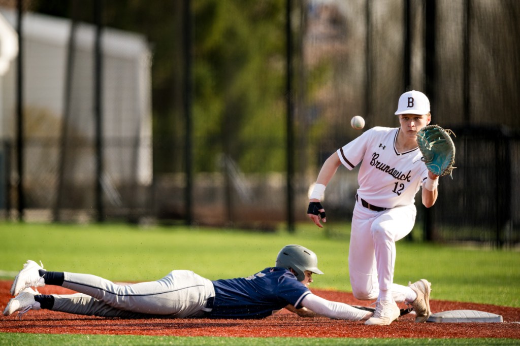 Brunswick received timely hitting in their home win against King on April 17. Infielder Jack Bylow hit a two-out, two-run single, giving the Bruins a 4-2 lead in the bottom of the fourth inning. Maximus Gabelli delivered two hits, Wim Nook showed a good eye at the plate, drawing four walks and infielder Jayden Montanez drove in a key run in the bottom of the sixth inning in the winning effort.