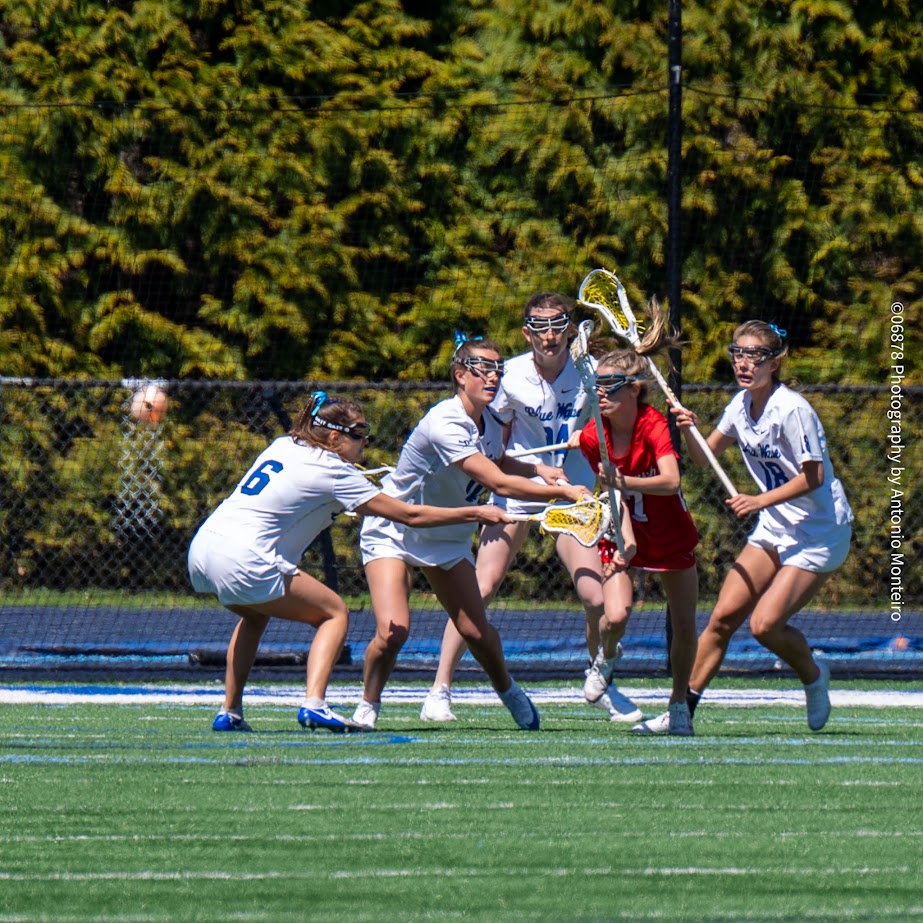 Ten players generated goals for Darien in its resounding 20-0 win over Greenwich on April 17. Senior Annabell Adams paced the Blue Wave offense, recording five goals with one assist. Junior Anna Von Kennel registered a hat trick with one assist for Darien, which jumped out to a 10-0 lead after the first quarter, then entered halftime with a 14-0 advantage. The triumph improved Darien’s record to 4-1, which they improved to 5-1 by beating Manhasset (N.Y.) High School on April 19, 14-9. Darien also has a 2-0 mark in the FCIAC.