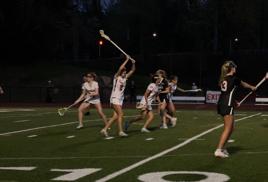 The momentum was on the Greenwich High School girls lacrosse team’s side after it finished the second quarter strong in its game under the lights at Cardinal Stadium against a formidable Ridgefield High School squad.