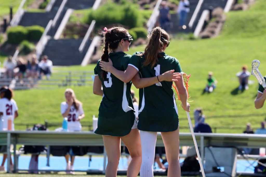 Photo courtesy of Tara Shea Bacigalupo: Senior Charley Bacigalupo, left and freshman Peyla Carcaterra at Sacred Heart’s 16-4 lacrosse win against Taft School on the team’s Senior Day.