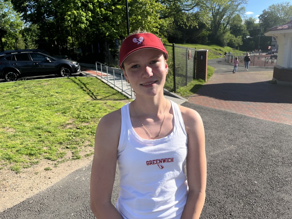 Junior Caitlin Mahoney swept to a 6-0, 6-0 victory for Greenwich at the No. 2 singles spot. Mahoney topped Olivia Giannettino, 6-0, 6-0.