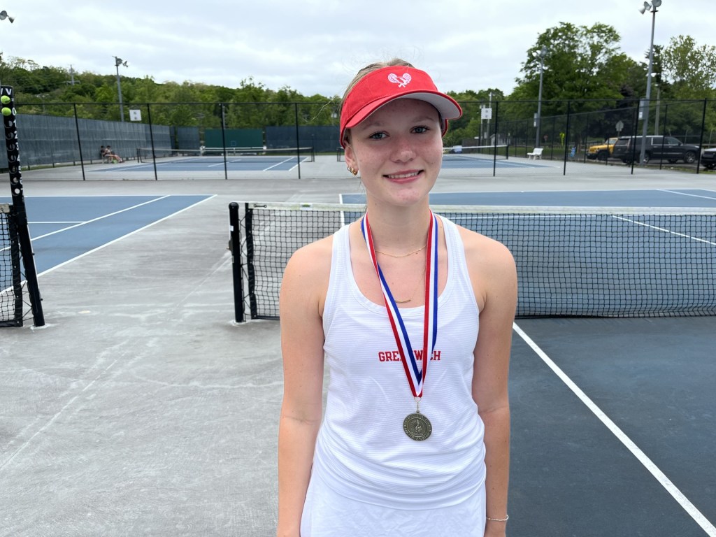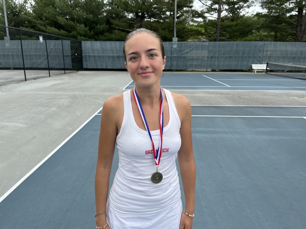 In the No. 2 singles match of the FCIAC finals, Greenwich junior Caitlin Mahoney was a 6-3, 6-2 winner against Ludlowe junior Elle Seaver. Mahoney is undefeated at the second singles spot for the Cardinals so far this season.