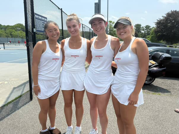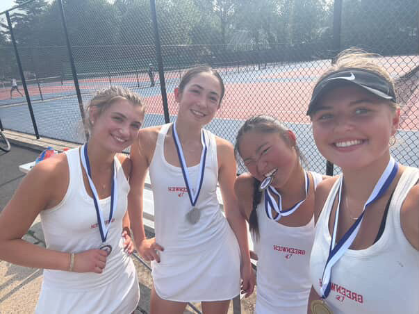 Also an outstanding, highly successful doubles team for Greenwich, Pecorin and Wilber went 4-1 in the CIAC Invitational. The Cardinals’ duo won their first round match versus seniors Abigail Raffone and Laura DeGennaro from Woodland High School, 6-1, 6-1.