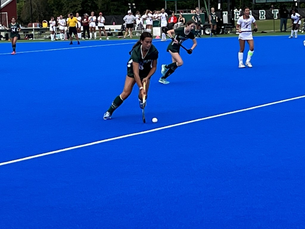 “We played aggressive in all four quarters and that really showed in how we moved the ball around the field and got everyone touches,” said Smith, whose older sisters Ryan and Morgan were also varsity members of the Sacred Heart Greenwich field hockey team in the past. Smith is a defender on the right side for the Tigers. Strong defensive play has been one of the trademarks of Sacred Heart, one of the premier teams in the FAA and NEPSAC.