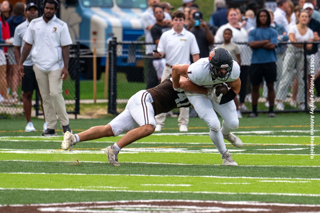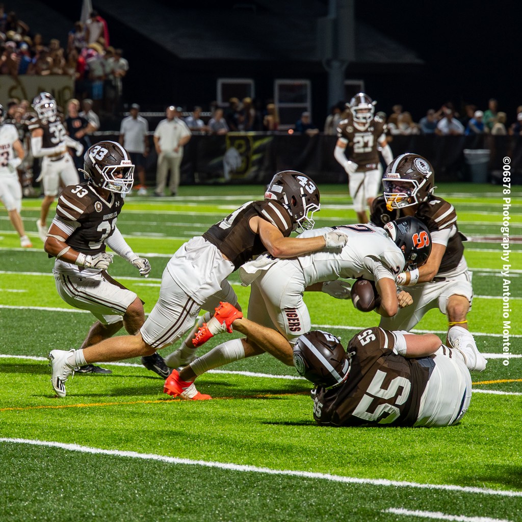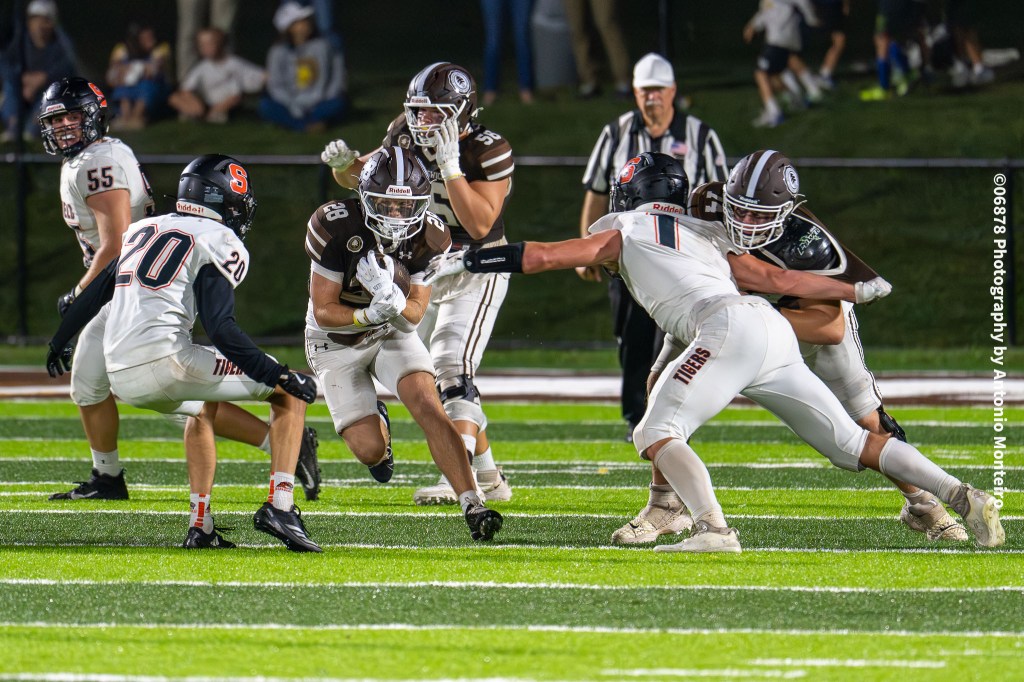 After Brunswick’s defense forced the Tigers to go three-and-out on their next possession, thanks to stellar play in the secondary, the hosts continued to light the scoreboard in the first quarter. Following a 14-yard reception by Bligh, who made his way out of the backfield for the catch, Park darted to the end zone from 41 yards out on a screen pass from Rolapp for Brunswick’s fourth TD of the opening quarter and a 28-7 lead with 1:49 to go in the first stanza.