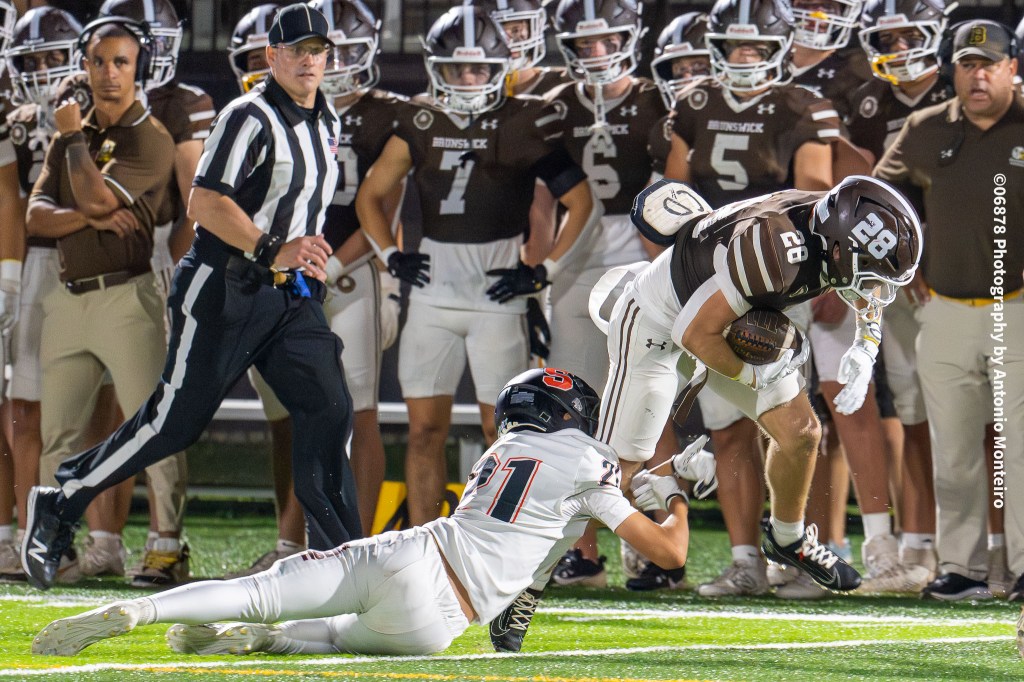 Leading 28-14, Brunswick went back up by three scores at 35-14 when Inman took Rolapp’s handoff and scored on an impressive 62-yard run with 7:45 remaining in the second quarter. Bligh broke an 18-yard run for a touchdown off a sweep to the right at the 2:01 mark of the second stanza, giving the Bruins a seemingly comfortable 42-14 halftime lead.