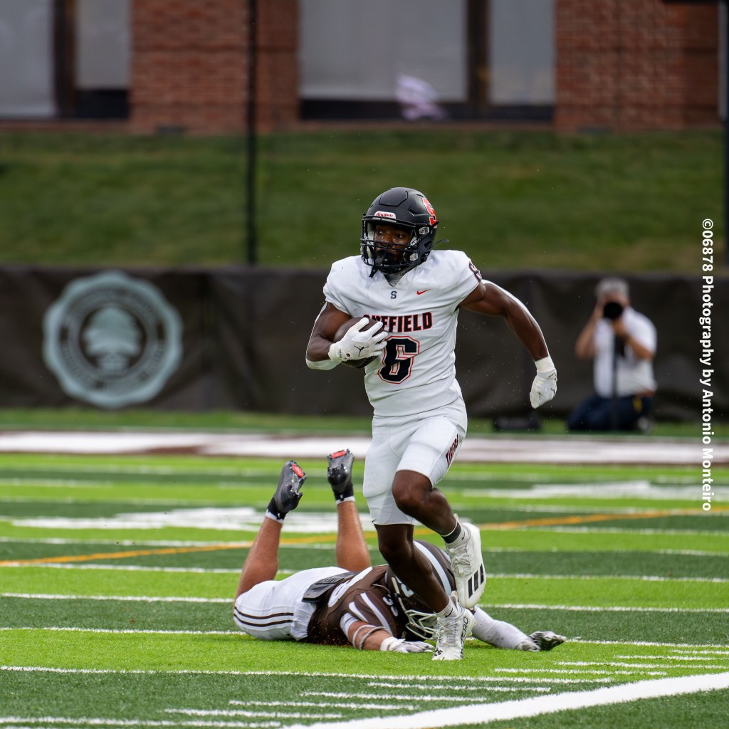 On the first play of the ensuing possession, Inman broke free of Suffield’s defense, finding a hole on the left side and dashed his way down the left sideline for a 63-yard score, making it 21-7 in favor of the Bruins with 4:46 still left in the opening quarter.