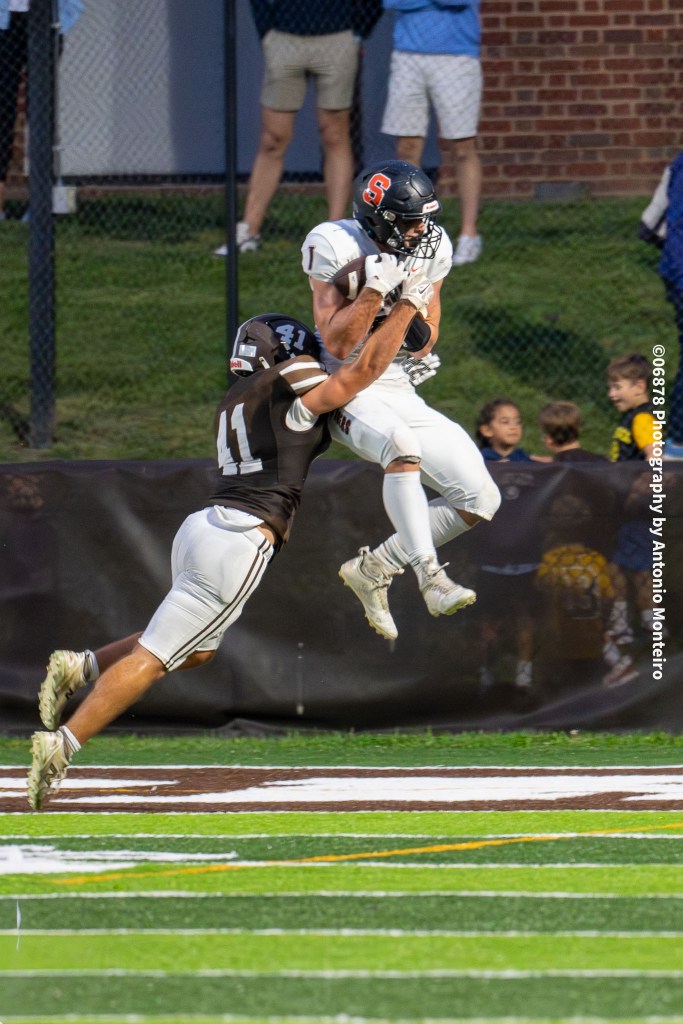 Brunswick proceeded to post 56 points on the scoreboard and as it turned out, they needed most of them to get past visiting Suffield Academy, which also had its share of highlight reel plays on this Sept. 27th night before a large crowd at Cosby Field.