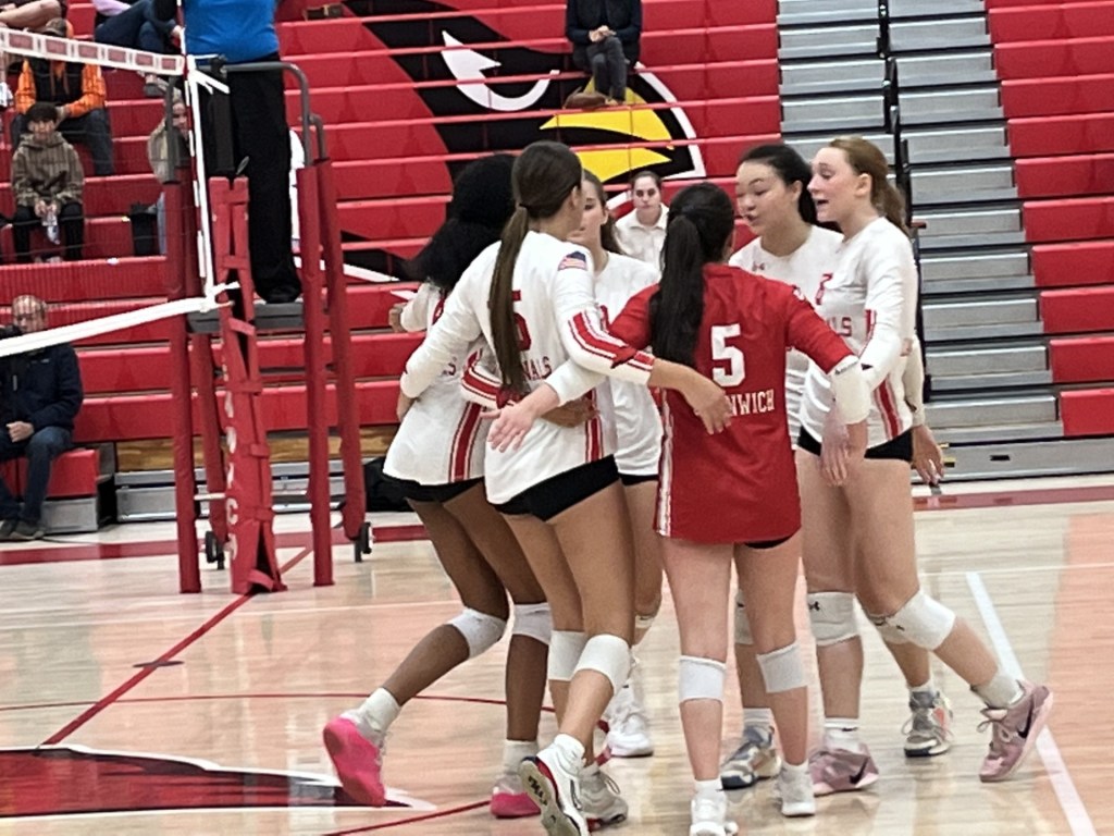 Greenwich swept Ridgefield, winning the match by set scores of 25-19, 25-20, 25-22. Though the Cardinals won in three sets, each one was close and they had to remain focused throughout.
