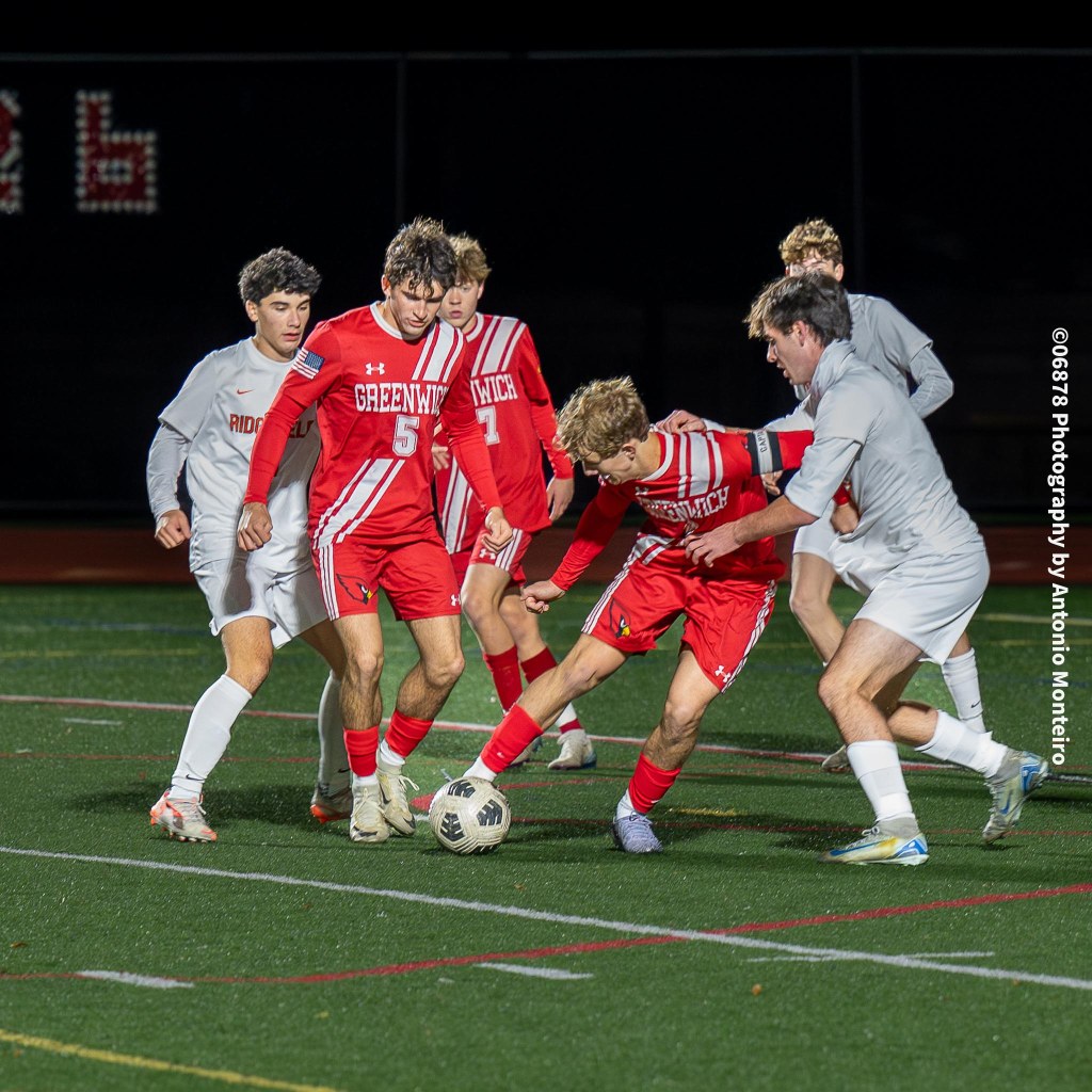 The opening half of this semifinal showdown between the Cardinals and Tigers concluded in a scoreless tie, though Greenwich held a significant possession advantage and generated numerous scoring chances and shots on goal. Luzuriaga, Bonilla and Alexander Amato paced the Cardinals up front, as they pressured Ridgefield’s defense and challenged Tigers senior goalie Jacob Hankla.
