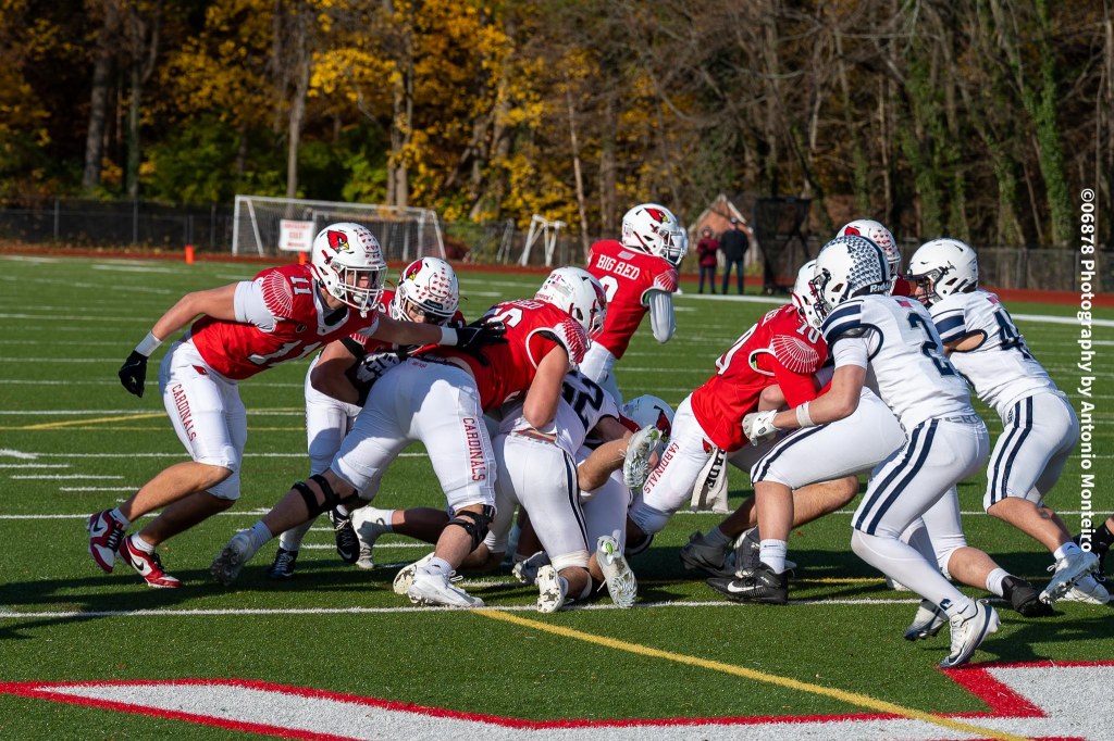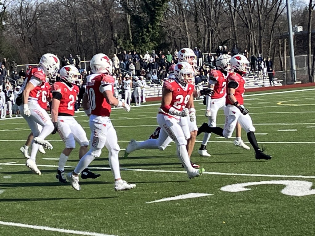 During the Cardinals’ second scoring drive, Tarantino completed a 14-yard pass for a first down to senior tight end Michael Golden and a pass to Lopez. The Cards’ signal caller was protected well throughout by offensive linemen Colin Falla (senior captain), junior center Casey Baker, junior Mikey Petrone, junior Nicholas Vomvolakis and senior Frank Kingsley.