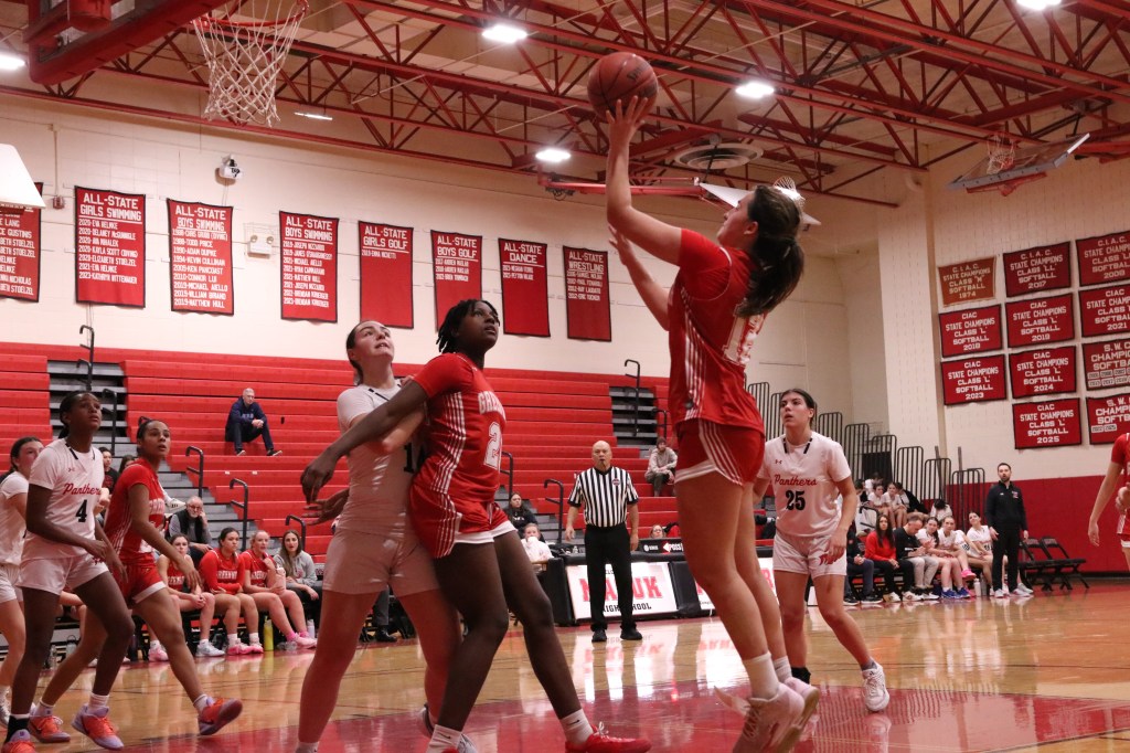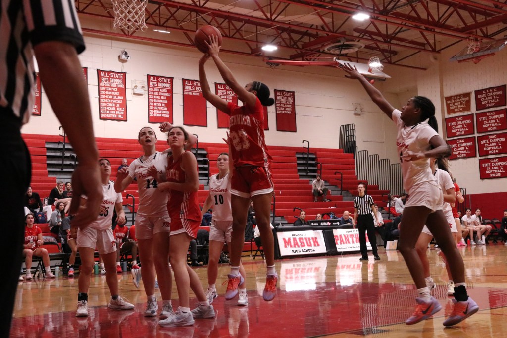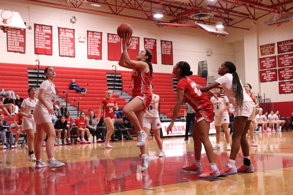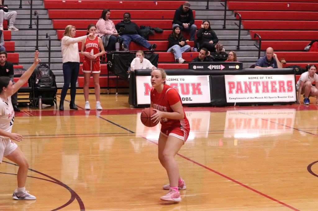 Photo by Dan Utzinger: It was a great game for Greenwich’s varsity girls basketball team against Masuk High School.