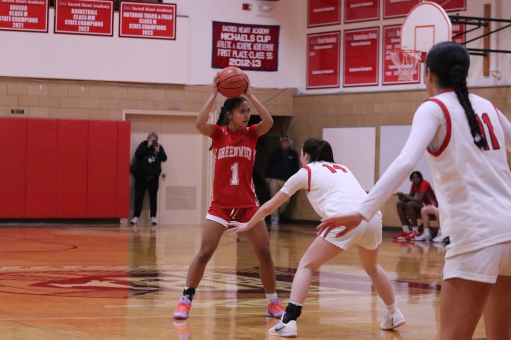 In Greenwich’s loss against Sacred Heart Academy on Dec. 16th, senior forward/guard Madi Utzinger scored 14 points, including one 3-pointer to pace the Cardinals.