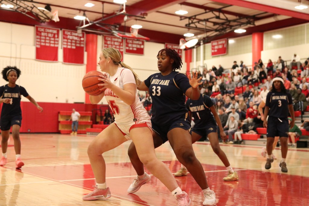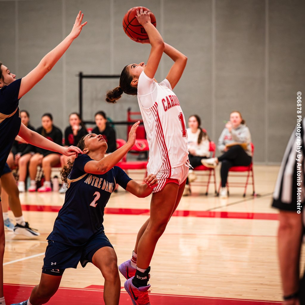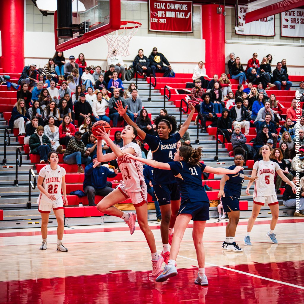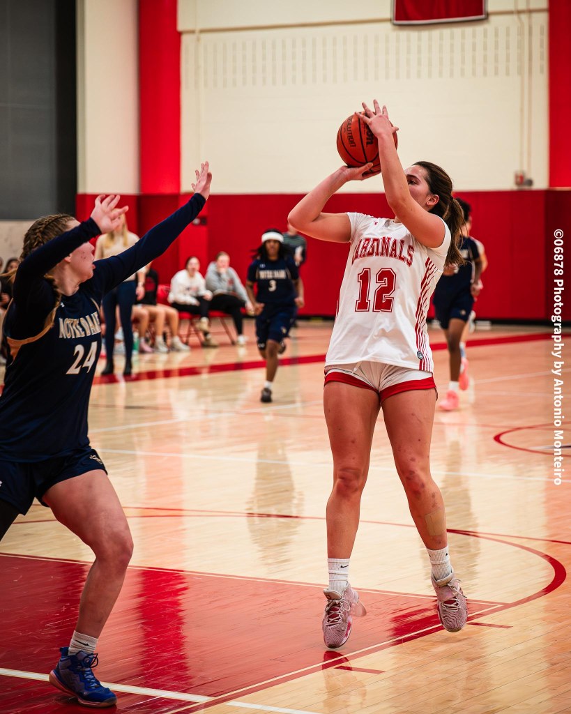Sophomore guard Elsa Xhekaj opened the scoring for Greenwich, swishing a 3-point shot from the right side, setting the tone for the Cards’ impressive shooting from the perimeter. A basket from Utzinger, a 3-pointer from Kiernan from the right corner and a layup from Utzinger off a Kiernan pass quickly put GHS ahead, 10-0, prompting a Notre Dame timeout.