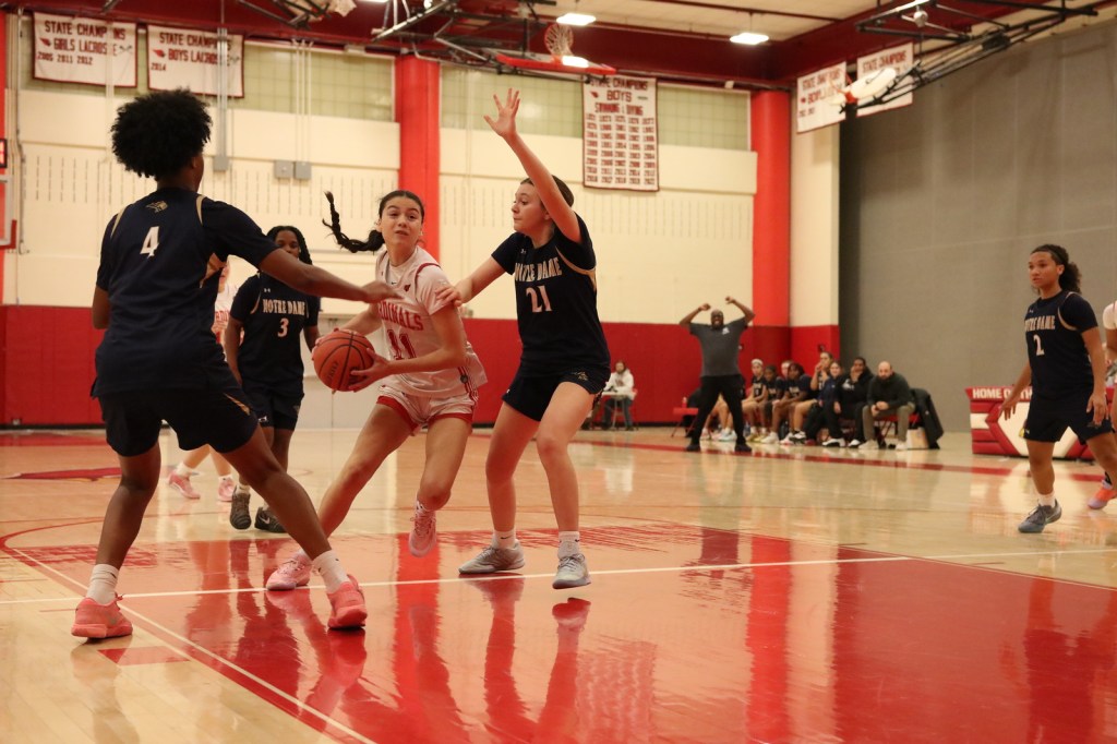 “I’m really proud of the girls’ hustle and resilience,” Greenwich head coach Megan Wax said following the Cardinals triumph against Notre Dame. “It was a fast game in tempo. It was a very physical game too and something that we’re working on constantly is making sure we don’t panic under pressure and that we can expect physicality and respond correctly through it. With that in mind, we did a really good job.”