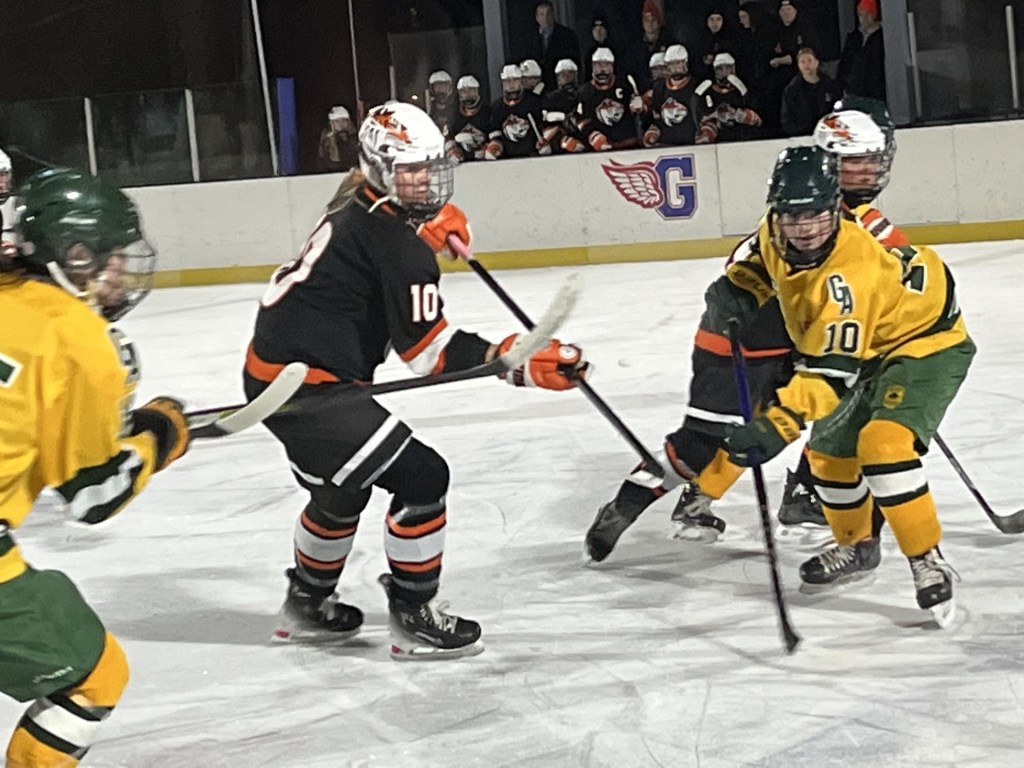 Senior forward Lila Braddock evened the score at 2-2 at the 6:26 mark of the second period, capitalizing on a power play. Braddock tallied off assists from junior forward Ellie Hillenbrand and defender Blake Higdon, an eighth grader.