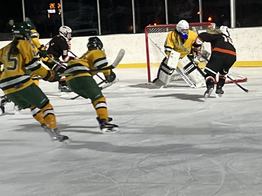 On a power play, Greenwich Country Day knotted the score at 1-1 with 1:54 to go in the opening period. Caroline Muzzio snapped the puck inside the left post with the Tigers applying a lot of pressure in the Gators’ zone, making it 1-1.