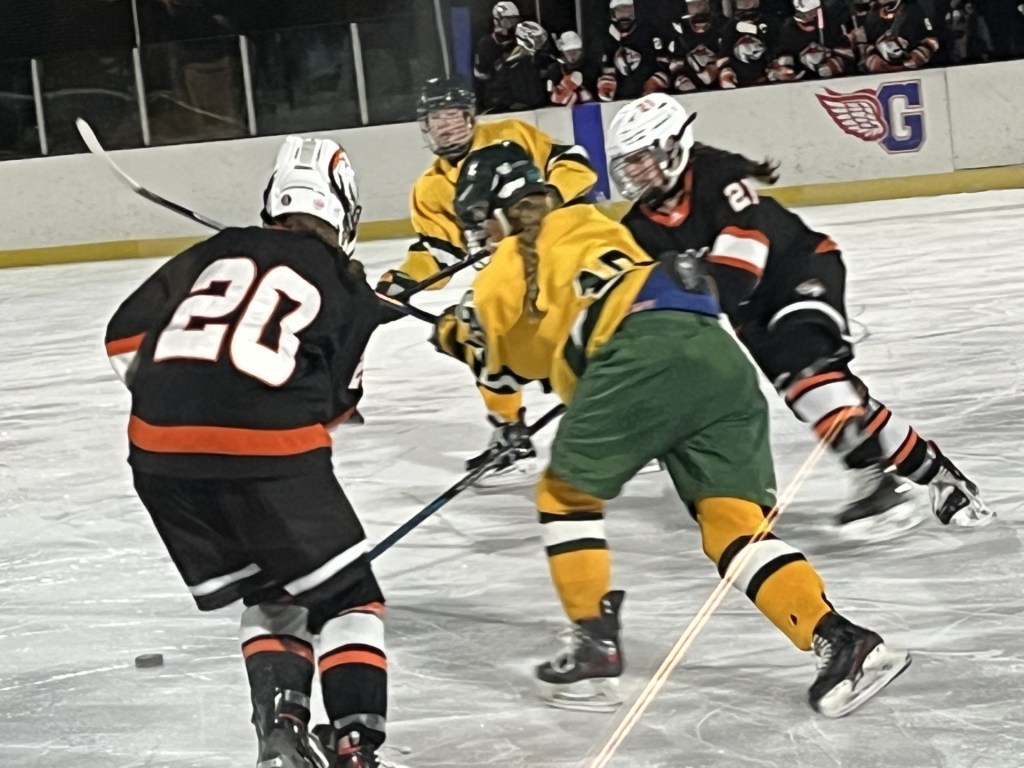 In a back-and-forth battle, Greenwich Academy and Greenwich Country Day skated to an impressive 3-3 tie in a game held outdoors at Greenwich Skating Club. The Tigers, who edged the Gators, 3-2, in the title game of the 2025 FAA Hockey Tournament, have a record of 3-0-1 in the FAA so far this season. GA has played just two FAA games so far and is 1-0-1.