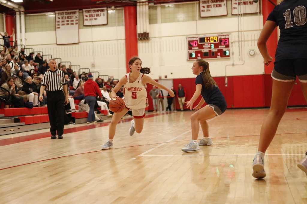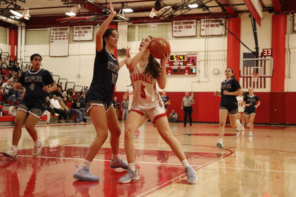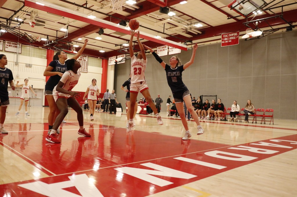Meanwhile, Greenwich’s man-to-man defense was effective in slowing down Staples’ offense. The Cardinals closed out on the Wreckers’ perimeter shooters and did a solid job on the defensive backboards. Once the Cards grabbed rebounds, they did their best to get the ball up court quickly.