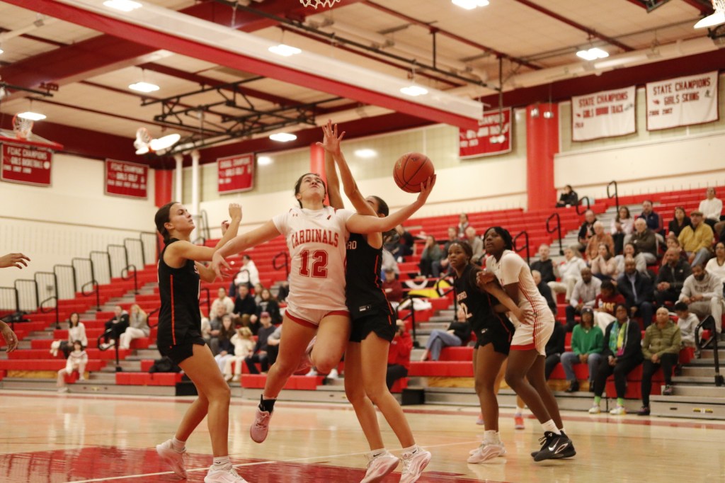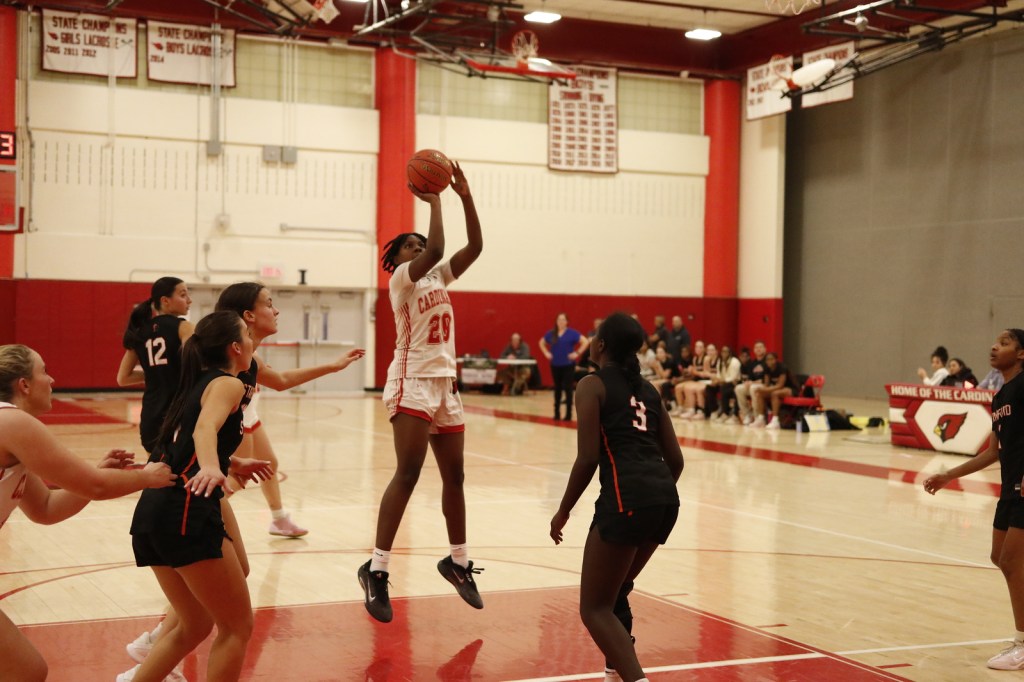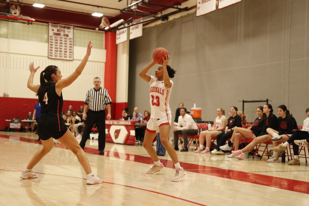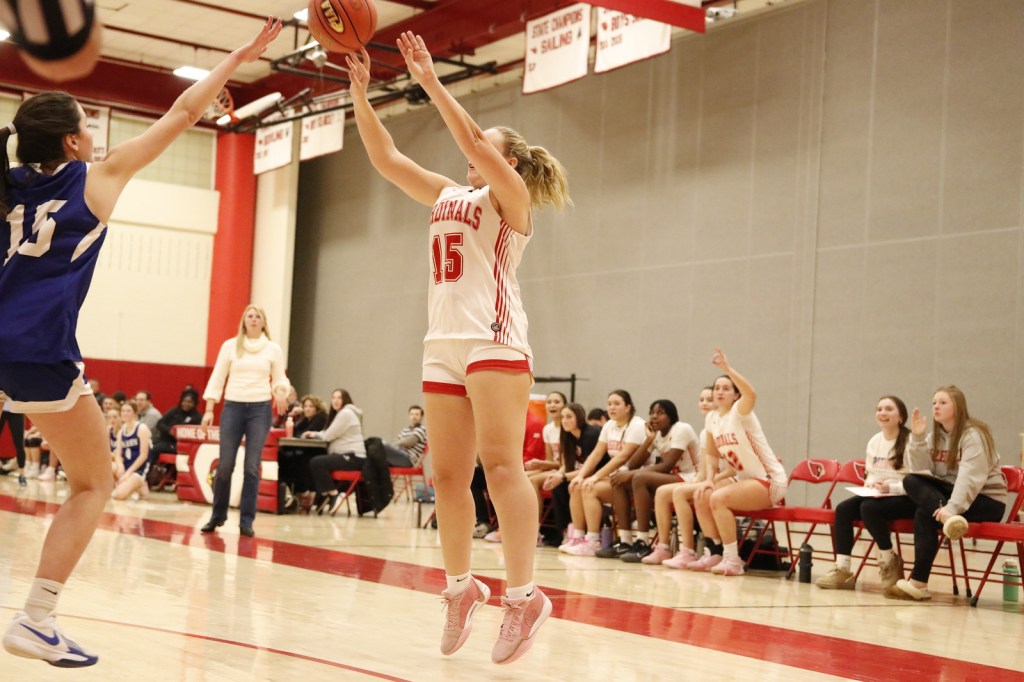 Sophomore point guard Elsa Xhekaj totaled 10 points, while senior forward/captain Mikayla Kiernan swished two 3-pointers for six points for the victorious Cardinals.