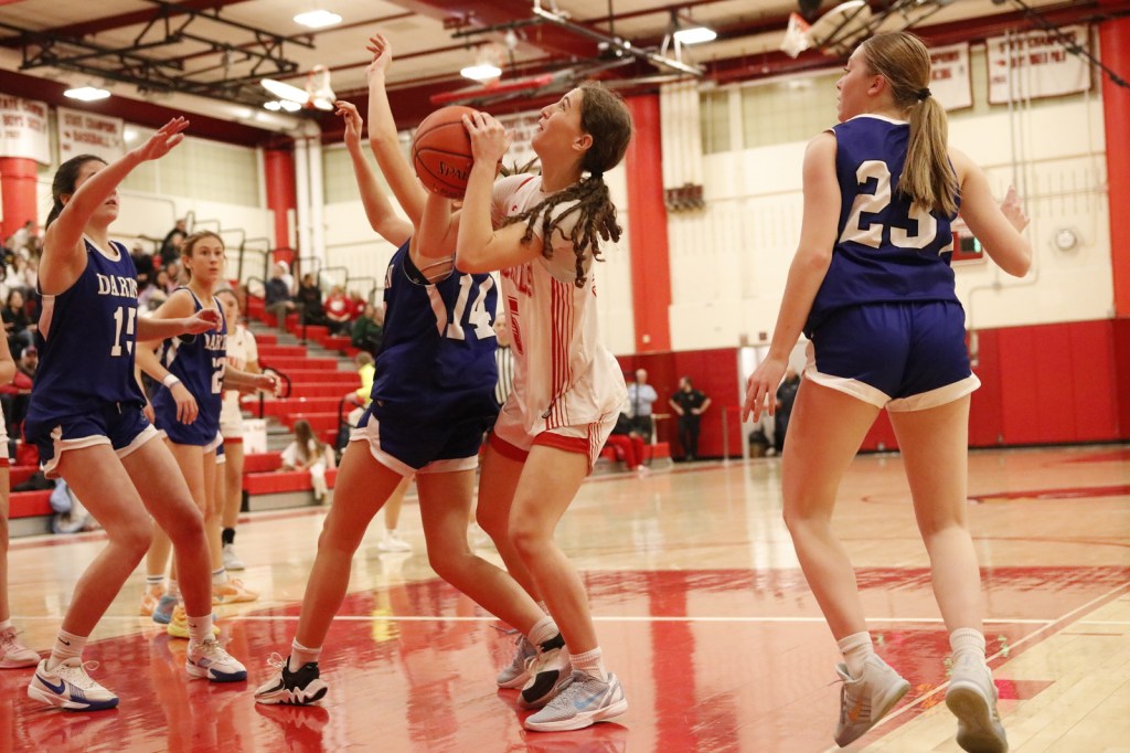 The Black Knights (10-4, 5-4 FCIAC) were paced by 15 points from senior guard/captain Taylor Roncoroni and seven points from senior guard Jalynn Presley. The first quarter ended with GHS leading 16-10. At halftime, the score was 23-22 in favor of the Cardinals following a hot-shooting second quarter by Stamford.