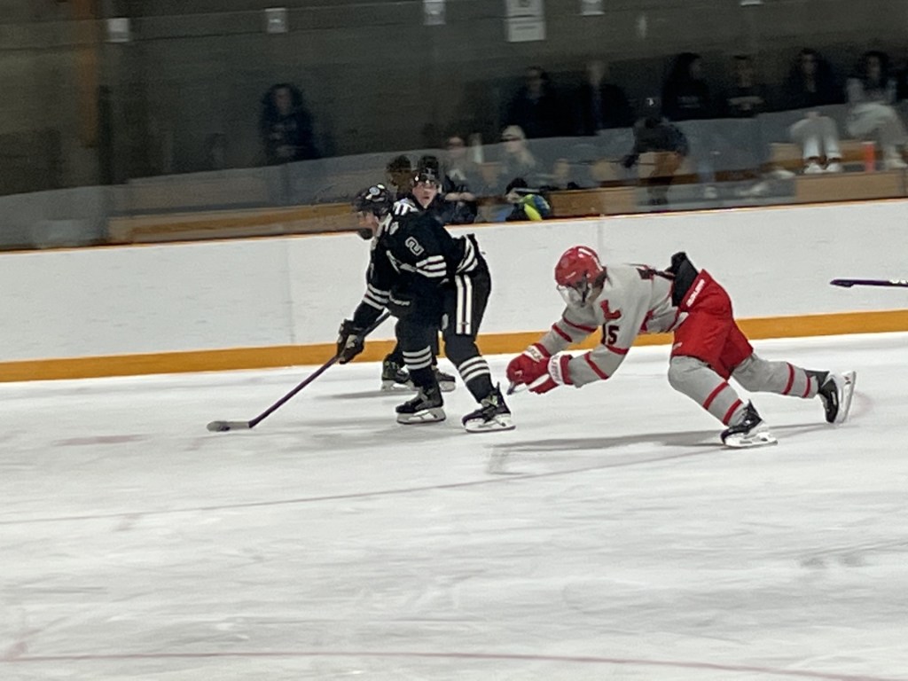 Junior forward Keegan Kazan, McCullough, senior defenseman Aidan Dougherty and sophomore Hampus Vandenberg, also a defenseman, each registered shots on goal in the opening period, snapping shots at Lawrenceville’s netminder. Yet it was the visitors that struck first in this fast-paced contest.